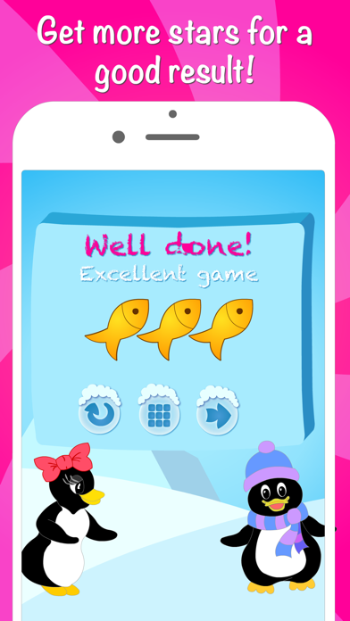 ICY MATH is the incredibly simple and fun way for training addition and subtraction skills! The game helps kids and adults to improve the speed of calculation, as well as memory, intelligence and wit. FEATURES: - 36 game levels - Training addition and subtraction skills - Different speeds - Simple kids-friendly interface - Colorful graphics - Cute characters - Pleasant sounds and music - Approved by kids and parents - Languages: English, Russian With the FUNNY LITTLE PINGUINS you will go through 36 levels, where the speed and the complexity of the problems gradually increases. Initial levels, which included COUNT TO 10 and 20, are perfect for the kids ages 4 to 8. Older kids will learn the next levels with COUNT TO 50 and 100. And the COUNT TO 1000 will be a great training for high school students and adults! BONUS SYSTEM The game contains nice bonus system for MORE FUN and interesting LEARNING: the fewer mistakes you make, the more bonuses you get! Simple KIDS-FRIENDLY INTERFACE makes the game enjoyable and comfortable for kids, helps them to train addition and subtraction skills easily and quickly. Colorful graphics and pleasant music do not leave indifferent neither kids nor adults! APPROVED BY KIDS AND PARENTS The kids and their parents participated in the game testing.