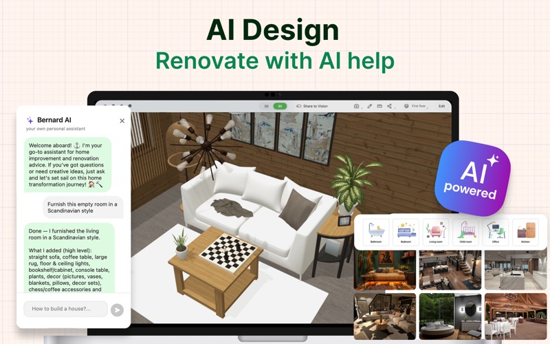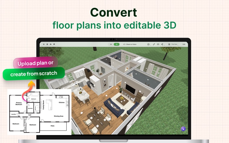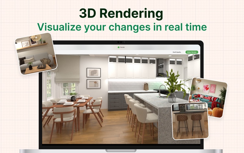 Whether you’re remodeling, renovating, or designing your dream home, Planner 5D has you covered! Create detailed 2D & 3D floor plans, browse a 5000+ item catalog, and create photo-realistic images of your projects. With over 2 million downloads, Planner 5D makes interior design easier than ever! Features: • Drag and drop design in both 2D & 3D modes • User-friendly features that do not require special skills • Create a completely unique home - from the floorplan to the finishing details • Browse the regularly updated 5000+ item catalog complete with furniture, appliances, decor, household items, landscape features and more • Create exceptionally detailed and personalized design in both the interior and exterior of your project • “Snapshot” function to create photo-realistic images of your projects with realistic lighting, textures, and shadows • Sign in with Google+ or Facebook to work on your projects on any platform, including your laptop or other mobile device • Switch between Metric and Imperial systems of measurement • Save and share your projects with friends, family and home professionals • Work on downloaded projects offline • Completely Ad-free • Multi-language Free Version • 2D and 3D editor • 150+ item catalog • Unlimited number of projects • Multi-platform synchronization • 600+ item catalog of colors, textures and patterns to personalize your design Premium Version • Access to the entire 5000+ item catalog • Ability to alter the size and appearance of all furniture Other Features • Apple Pencil support • 3D Touch support • Follows Apple Design Guidelines • Split-screen multitasking on iPad • Basic Accessibility features for the visually impaired If you have any questions, feel free to contact us at: support@planner5d.com Or send a message to our support team by tapping on the button "Report a Problem" in the profile screen. Follow us! Facebook: https://www.facebook.com/Planner5D Twitter: https://twitter.com/Planner5D Instagram: https://instagram.com/planner5d Planner 5D can be used without an active subscription with a limited catalog and without an ability to customize furniture. Premium features can be enabled with a Monthly subscription for $9.99 or Yearly subscription for $59.99 (prices vary by region) Payment for your subscriptions will be charged to your credit card through your iTunes account at confirmation of purchase. Subscriptions will automatically renew unless auto-renew is turned off no later than 24 hours before the end of the current subscription period. Subscriptions and auto-renewal can be managed/turned-off at the iTunes account settings. Price for subscription may vary by location. Privacy Policy: https://planner5d.com/pages/privacy/ Terms of Use: https://planner5d.com/pages/terms/