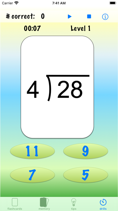 all about division: This is an app 'all about division'. It includes: + flashcards for review of division facts + memory game to reinforce division facts + tips explaining division + drills to continue reinforcing division facts In short, it's all about division, and hopefully it will help those who are not comfortable with division yet. - no ads - no in-app purchase