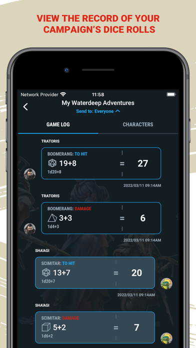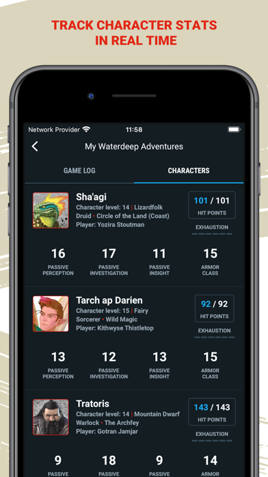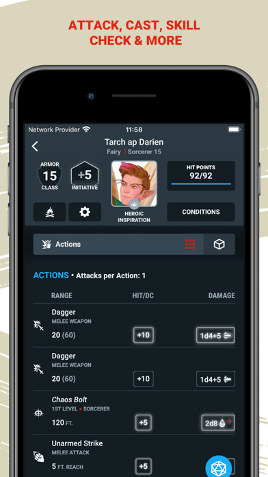 Make your Dungeons & Dragons fifth edition games faster, easier, and more fun wherever your fantasy role-playing adventures lead with the free D&D Beyond app! Never enter a D&D campaign without your character sheet - access all your characters online or offline, roll using the built-in dice roller and be ready for skill checks, attack rolls, saving throws, or whatever twists & monsters your DM throws at you. Manage health and spell slots, access your equipment, and know your proficiencies from the palm of your hand. Access all your Dungeons & Dragons content anywhere you go-adventures, sourcebooks, and more are at your fingertips. Forgot your favorite 20-sided die? Roll directly in the app and crit in style with themed digital dice sets. * Start playing D&D fast with premade characters from Baldur's Gate 3 and Lost Mine of Phandelver or use our Guided Character Creator * Use your D&D character sheets, spells, and stats on the go * Save time with the built-in dice roller to roll any D20, D100, D12, D10, D8, D6 & D4s - we do the math! * Pull up monster stats like owlbears, dragons, or mimics or others seen in movies such as Dungeons & Dragons: Honor Among Thieves * Offline access to your library--never miss your books, even in areas without wifi * Bookmarks and Search so you can find the rules, spells, items, and monsters when you need them! * Great for beginners, regular players, and seasoned Dungeon Masters * Easy to use digital tools used on shows like Critical Role More features coming soon! Check back for updates. Find us on Discord, X, Instagram, Facebook, or Pinterest: @dndbeyond or @wizards_dnd Watch us: https://www.twitch.tv/dndbeyond or https://www.youtube.com/c/dndbeyond D&D Beyond is the official digital toolset and tabletop game companion for Dungeons & Dragons from Wizards of the Coast. Learn more at http://www.dndbeyond.com https://www.apple.com/legal/internet-services/itunes/dev/stdeula/