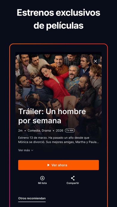 Disfruta de ViX, el servicio de streaming en español más grande del mundo. Más de 100 canales en vivo y on-demand con novelas, películas, series originales, deportes, noticias 24/7, microdramas, podcasts, música y mucho más. ¡Descarga la app y empieza a disfrutar en todos tus dispositivos favoritos, siempre en español! Mira ViX donde quieras, cuando quieras. ViX GRATIS - entretenimiento sin pausa - Series, comedias, películas, documentales y realities - Fútbol en vivo: Liga MX, Ligas MX femeniles, partidos clásicos - Noticias 24/7 y canales infantiles - Microcontenido exclusivo para ver en cualquier momento - Podcasts en video y audio sobre temas actuales - Totalmente GRATIS y sin necesidad de tarjeta de crédito ViX Micro - historias cortas que enganchan - Descubre nuestros nuevos microdramas en formato vertical, diseñados especialmente para móvil. - Episodios de 1–2 minutos, ideales para ver en cualquier lugar - Títulos como El regreso de la Heredera Fugitiva, Me fui gata, volví perra, y más ViX Música y Fiesta Latina - lo mejor de la música latina Explora ViX Música, nuestra nueva sección de contenido musical con presentaciones exclusivas, especiales detrás de cámaras y acceso a los mejores momentos de iHeartRadio Fiesta Latina, el evento musical que celebra a los artistas latinos más importantes del momento. ViX Premium - lleva tu experiencia al siguiente nivel - Acceso total a novelas, series originales y estrenos semanales - Películas exclusivas en español - Todo el deporte en vivo que te apasiona, incluyendo: UEFA Champions League, FIFA Club World Cup, Copa Oro y Copa América, UEFA Nations League, Liga MX y Ligas femeniles, CONMEBOL y CONCACAF - MLB y más eventos internacionales - Contenido sin anuncios (según plan) - Visualiza desde múltiples dispositivos al mismo tiempo - Planes mensuales o anuales — cancela cuando quieras La disponibilidad de contenido y funciones puede variar según la región. Términos de Uso: https://www.apple.com/legal/internet-services/itunes/dev/stdeula/