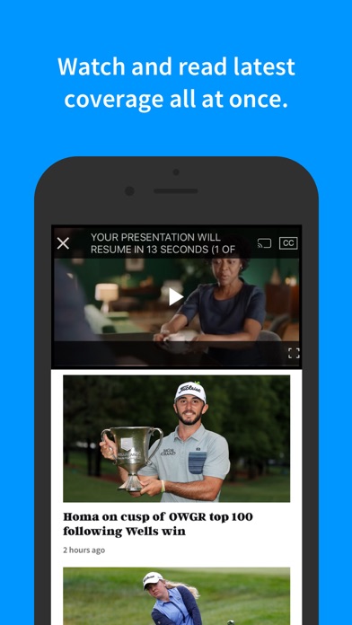 The all new Golf Channel app is your guide to everything golf. Watch live action from all the major tours and get up-to-date news, highlights, videos, interviews and analysis. Watch, listen and read the best golf coverage in the sport. It's Golf Channel in your pocket! Live tournament coverage from the PGA Tour, LPGA, DP World Tour, PGA Tour Champions, Korn Ferry Tour and NCAA and amateur golf. Major championship news, updates, highlights and analysis from The Players, Masters, PGA Championship, U.S. Open and Open Championship, as well as the FedEx Cup Playoffs, Ryder Cup and Presidents Cup. Home to women’s golf coverage, including live tournament action of all five major championships and the Solheim Cup. Watch Golf Channel 24/7 on the app for live tournaments and replays, and shows like “Golf Central,” “Golf Today” and “Live From.”