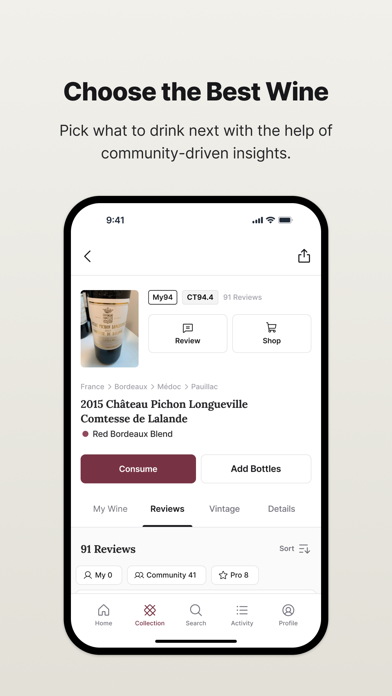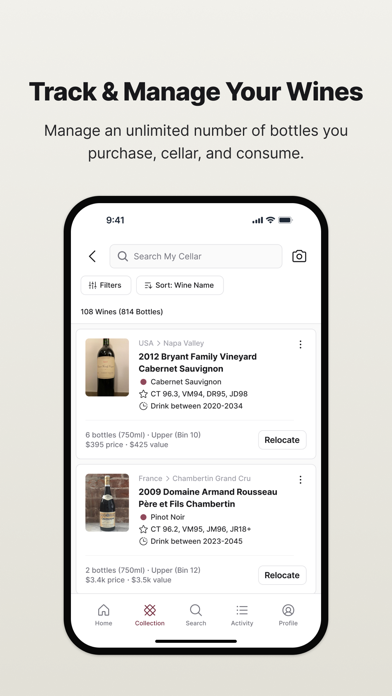 CellarTracker is the top-rated wine app with 4.9 of 5 stars, over 13.6 million wine ratings and reviews, and over 8.8 million users globally, collectively tracking $21 billion of wine and millions of personal memories captured over the last 20 years. CellarTracker is the most current, accurate, and comprehensive wine database globally with over 5 million unique wines to explore, 1000 + new wines added each day, and over 193 million bottles tracked by members. Featured in leading publications globally including the New York Times, Guardian, Wall Street Journal, CNBC, Robb Report, CNN, Financial Times, Decanter, Fox Business and more. CellarTracker empowers millions of people around the world to discover and experience wines they love. If you’ve ever wondered what wine to pick from a restaurant wine list, have a small collection at home, or are a long-time wine enthusiast with a $10 million cellar, CellarTracker is the best wine cellar management app and wine tracker hands down. We completely modernized the CellarTracker experience and our new wine app was released last year – we have carefully built AI into the product over the last two years, powered by over 20 years of tasting notes and wine rating data that is unparalleled in the industry. TRACK YOUR WINE EXPERIENCE The best wine app and wine cellar tracker for casual drinkers, collectors, and connoisseurs alike. CellarTracker is the go-to wine app for wine ratings. - Add personal wine tasting notes, reviews, and wine ratings for each bottle - Access over 13M wine reviews: 11M community tasting notes + 2M professional reviews - Use the wine scanner or barcode tool to log bottles in seconds KNOW A FAIR PRICE TO PAY Make smarter purchases with real-time price transparency using the wine cellar application and wine inventory software trusted by serious collectors. - View 15+ years of valuation data and values based on over 80+ million data points - Access auction data and average Wine-Searcher prices from 37,000+ merchants and compare 20M+ listings: retail, auction, and more CHOOSE THE BEST BOTTLE OF WINE The best wine tracking app to help you open the perfect bottle at the perfect time—based on your collection, taste, and timing. - Get personalized wine recommendations from your ratings - Stay alert on bottles ready to drink vs. those needing more time - Compare community tasting notes, wine reviews, wine ratings, and your notes EFFORTLESSLY MANAGE YOUR CELLAR The most intuitive wine tracker and wine scanner for organizing your collection—without complexity or cost. - Add wines via wine scanner, barcode, label scan, or digital receipt forwarding - Track storage locations and pending deliveries - Manage wine inventory collections across multiple storage sites - Monitor cellar value and consumption trends DISCOVER NEW WINES & PRODUCERS Use our wine cellar tracker and wine rating app to explore top wines and trending producers from the global wine community. - Get tailored wine suggestions based on your preferences - Use the wine scanner to see what others are drinking and loving THE MOST ACCURATE WINE DATABASE CellarTracker’s community-powered platform delivers unmatched coverage and accuracy and is well established as the best wine reviews app and wine tracker. - Search from 5M+ unique wines with 1000+ new wines added daily - Rich data on producers, regions, vintages, and varietals SEAMLESS WINE-SEARCHER INTEGRATION A powerful feature of our cellar tracker app and wine tracker, Wine-Searcher integration ensures real-time market intelligence. - Instantly view and compare prices from 37,000+ global merchants - Access over 20M offers across retail and auctions SMARTER WINE DECISIONS WITH THE BEST AI WINE APP The only AI wine app and cellar tracker powered by over 13M+ tasting notes, reviews, and ratings - Get recommendations on whether you’ll like a wine based on your unique taste - Get expert-grade food pairing recommendations
