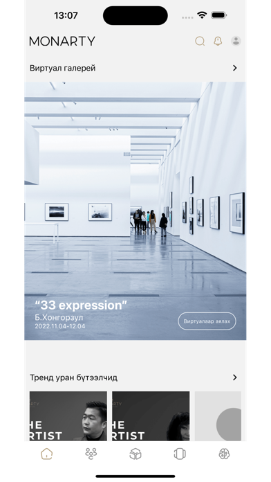 Монарти арт тех AR,VR,3D технологид суурилсан урлаг болон технологийг хослол нь бүтээгч, хэрэглэгч, харилцагч нарын дунд орших орон зай, бодит бус мэдрэмжийг арилган, уламжлалт галерейн үйлчилгээг эхнээс нь дуустал нэг системээр хялбар, шуурхай, найдвартай хүргэх болно. Хязгааргүй аугментэд орон зай Орчныг 360 градус болон виртуалаар харуулах байдлын дараагийн түвшин ба хэрэглэгч нэмэлт төхөөрөмжгүйгээр зөвхөн гар утсаа ашиглан үзэсгэлэнгийн танхимд өөрийн биеэр дотор нь орсон мэт шилжүүлж, бодит мэдрэмжийг олгож буйгаар гайхамшигтай юм. Брэнд/контентын удирдлагын систем Уран бүтээлч, галерей, цуглуулагч, зорилтот бизнесийн байгууллагууд өөрийн мембершипыг идэвхжүүлснээр өөрсдийн танилцуулга профайл үүсгэх, бүтээл/контентын сангаа бүрдүүлэх, виртуал галерейд үзэсгэлэн хэлбэрээр гаргах боломжтой ба контентоо өөрийн хүссэнээр засварлах, удирдах, зогсоох боломжтой. Хэрэглэгчийн дата анализ Хувийн профайлаас өөрийн хэрэглэгчийн зан төлөв, сонирхол, хандалтын урсгалыг шууд харуулах болно. Энэхүү систем нь урлагийн салбарт өмнө нь байгаагүй бөгөөд аппликэйшнд нэгдсэн уран бүтээлч, цуглуулагч, галерей нарт зах зээлийн зан төлвийг ойлгох, борлуулалтаа нэмэгдүүлэх, хэрэглэгчидтэй урт хугацаааны тогтвортой холбоог тогтооход маш том давуу талыг үүсгэх болно. Хялбар төлбөрийн систем Оюуны өмчийн хамгаалалт дор олон улсын баталгаат дижитал гэрээгээр, олон улсын төлбөрийн бүх хэрэгслээр шууд худалдан авах болон хүргэлтийн үйлчилгээг авах боломжийг олгоно.