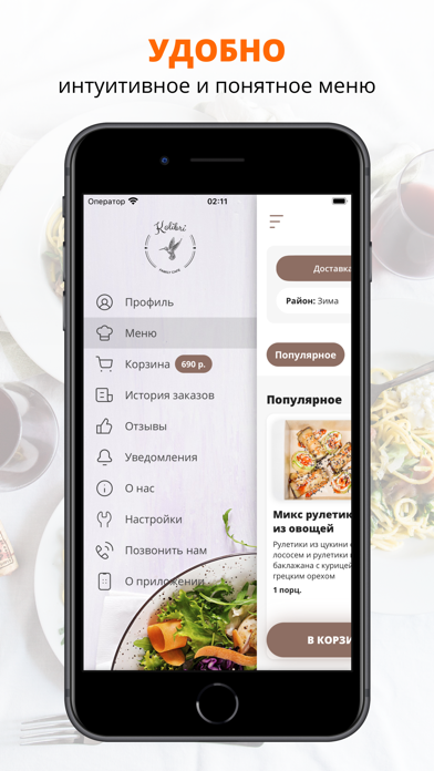 Оцените всё удобство функционала: интуитивно понятное и разнообразное меню, удобная корзина и быстрое оформление заказа, выбор города и зоны доставки, выбор способа оплаты, личный кабинет с историей заказов, промокоды, скидки, акции, уведомления о статусе заказа. Скачивайте наше приложение, оформляйте заказ и наслаждайтесь любимой едой, где бы Вы ни были! Приятного аппетита!