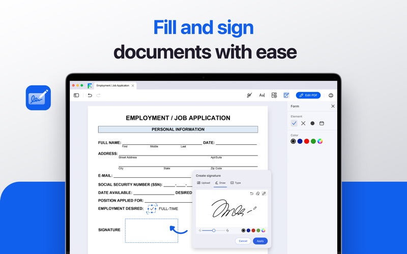 Looking for a fast, reliable way to handle your documents wherever you are? Need a tool to edit, sign, or fill out PDFs in seconds? Meet Forma—the ultimate app that makes managing your files efficient and hassle-free. Packed with intuitive tools, Forma lets you tackle everything from form filling to document editing in just a few taps. It’s the all-in-one solution built to simplify your workflow. From the team that created iScanner, an app trusted by 100M+ users worldwide! What’s possible with Forma? ● Edit PDFs with ease by adding text and images ● Fill out tax forms, applications, surveys, and other documents directly in the app ● E-sign documents with a typed or hand-drawn signature, then save it for fast access whenever you need it ● Convert PDFs to a wide range of formats, including JPG, DOC, XLS, and PPT With Forma, you have everything you need to edit, fill, and manage your PDF documents—right at your fingertips. Transform the way you work with must-have, easy-to-use features that keep you productive wherever you are. Download Forma today! Forma PRO ● Unlock Pro access to all features with a subscription. You will be charged once your purchase is confirmed. ● Subscriptions automatically renew 24 hours before the expiration date. Manage or cancel them anytime through your App Store account settings Privacy Policy: http://bpmob.com/forma/privacy/en/ Terms of Use: http://bpmob.com/forma/terms/en/ For any questions or inquiries, contact us at https://bpmob.com/forma_mac/support