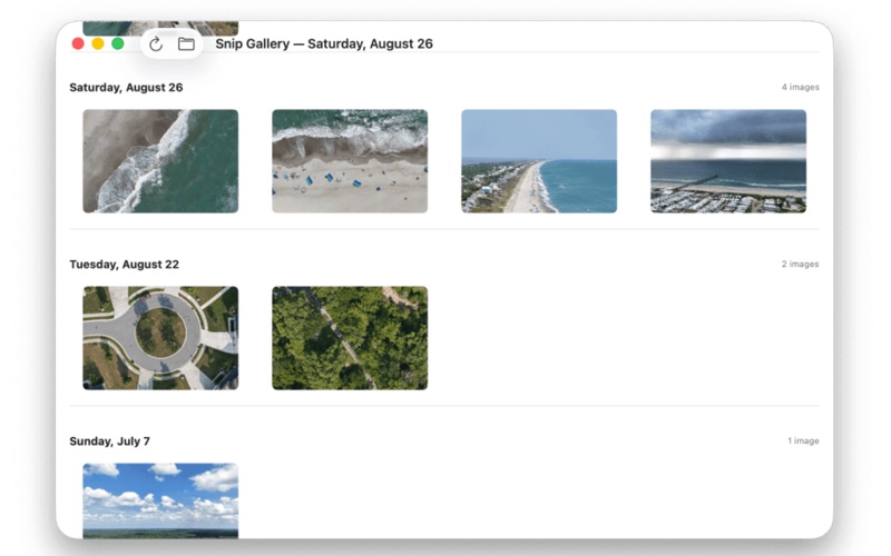 - Take screenshots! - With a global hotkey even when the app is in the background. - Multi monitor support. - Retina display ready. - Open Images for editing. - Native "Open With" integration in Finder. - Copy to Clipboard / Save / Save As. - Undo / redo! - Paste objects on canvas from clipboard. - Rotation support for rectangles, text, and pastes from clipboard. - Hold SHIFT while rotating to snap every 15 degrees. - Pinch to zoom / Double tap to zoom / cmd + scroll wheel to zoom. - Snip Gallery to view snips by date. - Liquid Glass first design. - Privacy focused - no network access or data collection - your snips are purely yours.