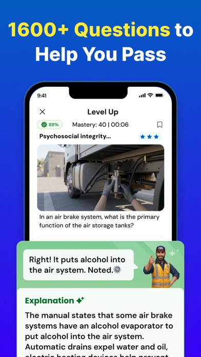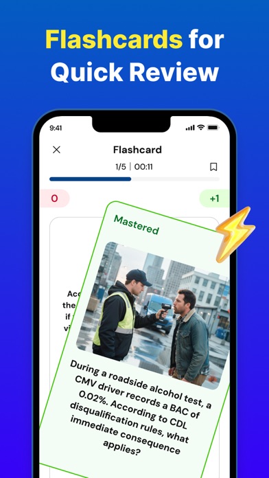 CDL Practice Test 2026 — Built to Pass, Faster Get ready for your Commercial Driver’s License with state-aligned questions, realistic exam simulators, and a Study Plan that adapts to your test date and weak spots. ►Why Drivers Choose FastPass Skip the 200-page manual → short, targeted practice that sticks. State-specific coverage → Class A/B/C, CLP permit & all major endorsements. Know when you’re ready → a clear Readiness Score shows your pass probability so you can book with confidence. ►Power Features (built for real drivers) Study Plan: daily plan that adapts to your weak areas & schedule. Smart Explanations: plain-English answers with key rules & numbers. Missed Questions: drills only the questions you miss. Exam Simulator: timed, pressure-matched practice like the real test. Readiness & Progress: watch your pass probability climb. All Tests in One App: CLP permit + endorsements—Air Brakes, Combination, HazMat, Tanker, Doubles/Triples, Passenger, School Bus, X. Optional Audio & Spanish (where available) for study on the go. ►Built for Passing Our questions mirror the official style, our simulator matches real pacing, and your Readiness Score makes timing clear. We cannot guarantee results, but we give you everything to walk in confident on test day. ►Topics & Endorsements General Knowledge (A/B/C), Air Brakes, Combination Vehicles Hazardous Materials (HazMat / H), Tanker (N), Doubles/Triples (T) Passenger (P), School Bus (S), X (Tanker + HazMat) Pre-Trip Inspection; Basic Control Skills & Road Test Tips Cargo Securement, Coupling/Uncoupling, Space & Speed, Night Driving, RR Crossings, Mountain Driving, HOS, Trip Planning, Safety & Emergencies. ►50 States Covered (state-aligned practice) Alabama (AL), Alaska (AK), Arizona (AZ), Arkansas (AR), California (CA), Colorado (CO), Connecticut (CT), Delaware (DE), Florida (FL), Georgia (GA), Hawaii (HI), Idaho (ID), Illinois (IL), Indiana (IN), Iowa (IA), Kansas (KS), Kentucky (KY), Louisiana (LA), Maine (ME), Maryland (MD), Massachusetts (MA), Michigan (MI), Minnesota (MN), Mississippi (MS), Missouri (MO), Montana (MT), Nebraska (NE), Nevada (NV), New Hampshire (NH), New Jersey (NJ), New Mexico (NM), New York (NY), North Carolina (NC), North Dakota (ND), Ohio (OH), Oklahoma (OK), Oregon (OR), Pennsylvania (PA), Rhode Island (RI), South Carolina (SC), South Dakota (SD), Tennessee (TN), Texas (TX), Utah (UT), Vermont (VT), Virginia (VA), Washington (WA), West Virginia (WV), Wisconsin (WI), Wyoming (WY). ►Download now—get your Readiness Score and start your fast path to a CDL. Email us at support@solvely.ai Terms of Use: https://solvely.ai/term Privacy Policy: https://solvely.ai/privacy-policy