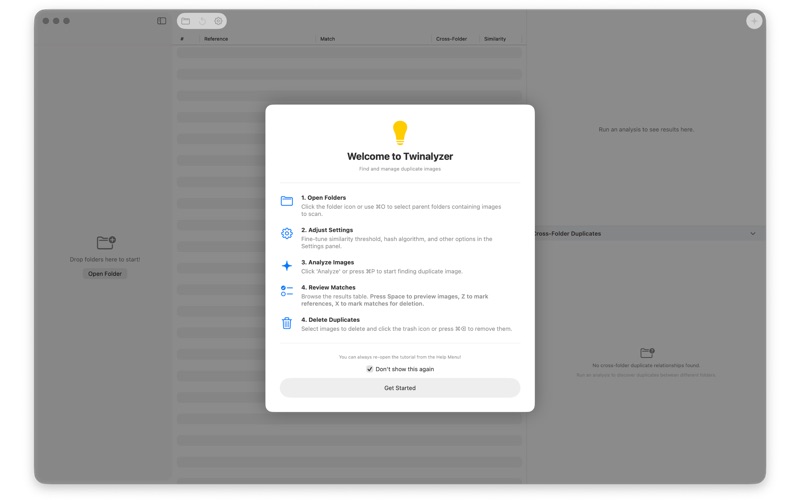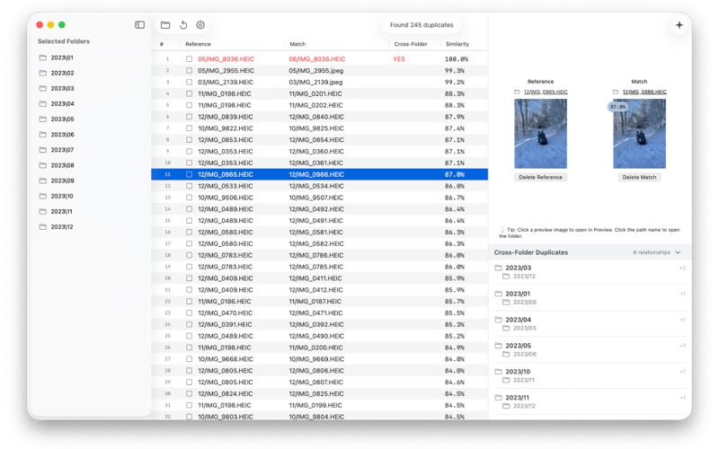 Twinalyzer is a Mac App that scans your folders and groups duplicate and look‑alike photos—even when they’re resized, rotated, lightly edited, or named differently. Twinalyzer uses Apple Vision for high‑quality similarity, then shows you crisp previews so you can keep only the best.