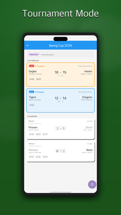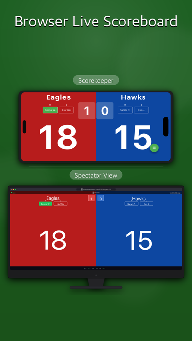 Still using pen and paper to track your match results? Your scores — live, on every screen. ▸ Complete Snooker Scoring • Colored Ball Buttons — One tap for each ball: Red (1), Yellow (2), Green (3), Brown (4), Blue (5), Pink (6), Black (7). • Live Break Tracker — Current break shown live. Resets automatically on miss or foul. • Foul Points — Tap Foul in SpeedDial to award minimum 4 points to opponent. • End Frame — SpeedDial "End Frame" to close the current frame and advance to the next. • Frame History — Full frame-by-frame score record throughout the match. • Match Frames — Best of N frames. Set target in match settings. ▸ Live Broadcast, Anywhere • Browser Live Scoreboard — Share one link. Spectators follow live from any browser. No app needed. • Tournament Mode — Auto-generate brackets, invite players by QR code, track every table simultaneously. • Full Overview — Every match in your tournament, live on one screen. ▸ More Ways to Score • Apple Watch Control — Control scores from your wrist. Record points without touching your phone. • TV & External Display — Cast the live score to any TV or external monitor via AirPlay or HDMI. • Do Not Disturb — Silence calls and notifications automatically during your session. • Match History & Export — Full ball-by-ball record for every frame. Review and share as a text file. ▸ Built For Every Player → Club evenings and snooker leagues → Tournament organizers and referees → Coaches running practice sessions → Any session that needs a scoreboard Free download. Your match is live now. Play multiple sports? Score Syncer covers badminton, table tennis, tennis, pickleball, basketball, volleyball, soccer, and more. Search "Score Syncer" on the App Store.